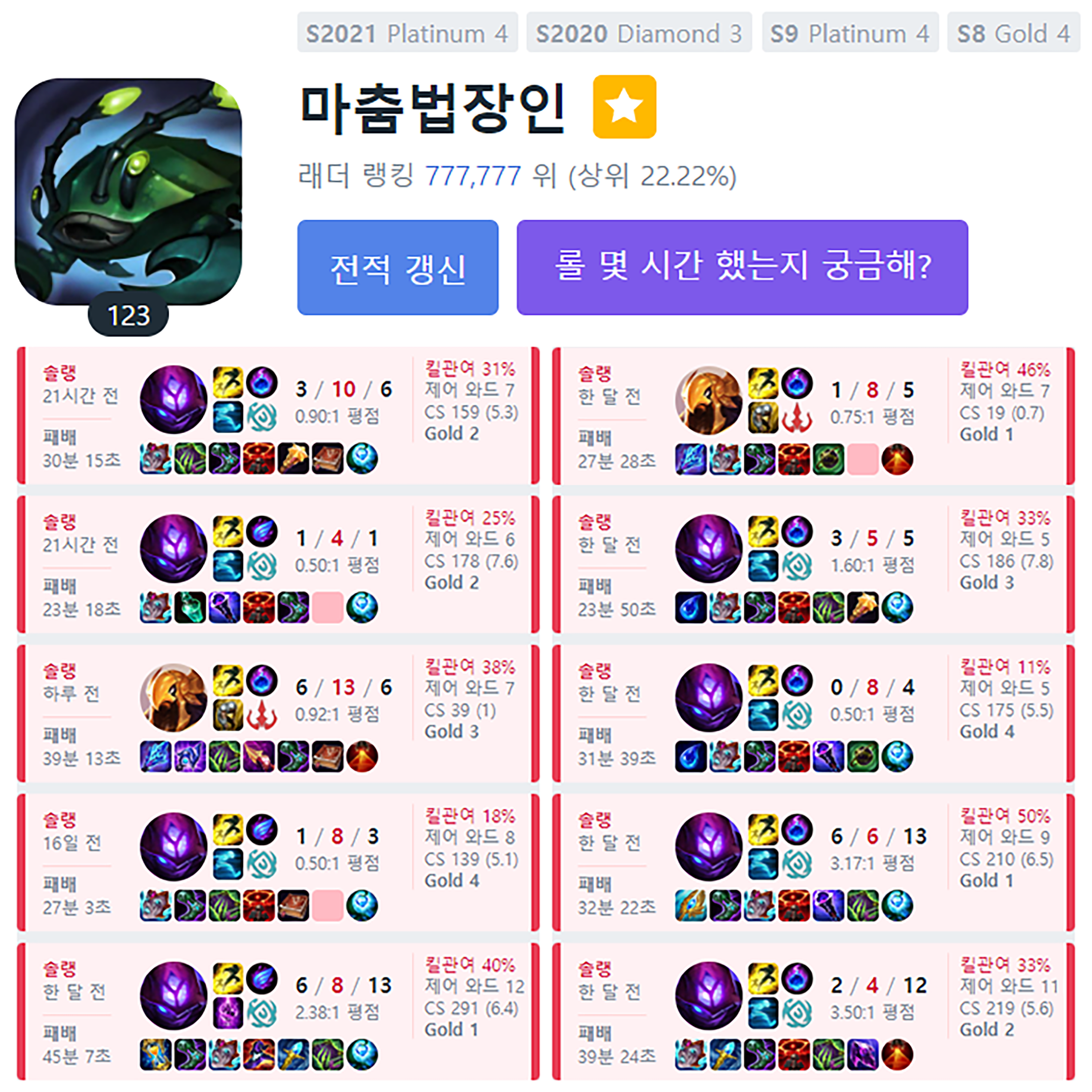 지금은 골드3 연패중인 마춤법장인...